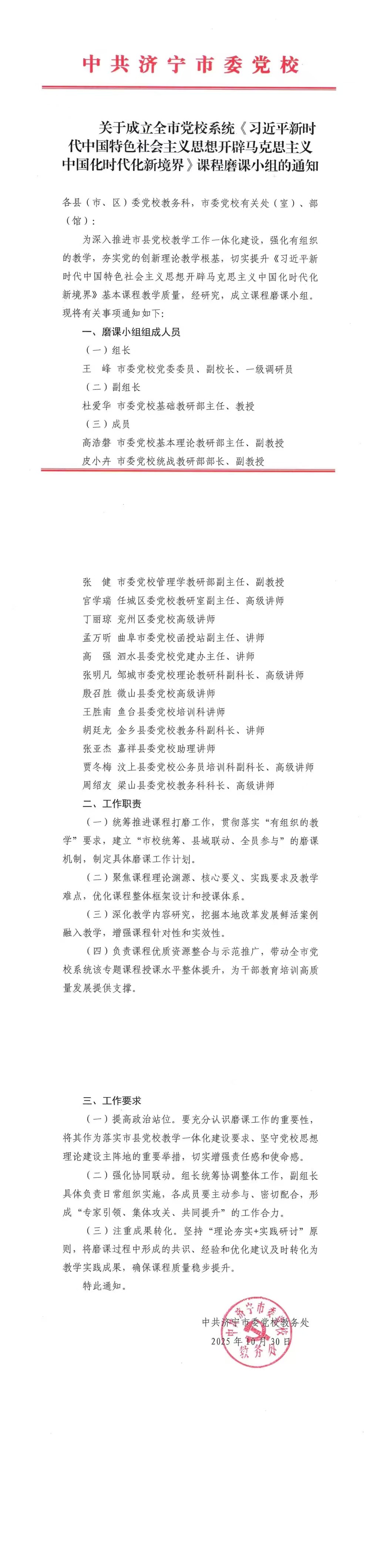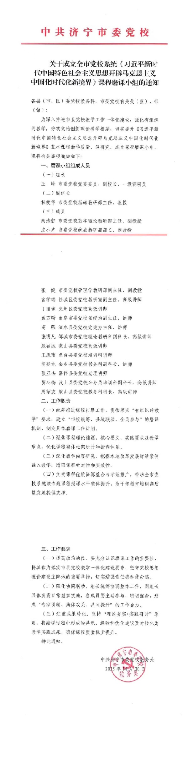 开辟马克思主义中国化时代化新境界》课程磨课小组的通知