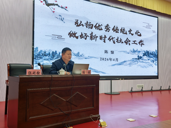 4月3日下午,市委社会工作部部长、市委“两新”工委书记陈慷同志应邀莅临我校,以《弘扬优秀传统文化 做好新时代社会工作》为题作专题辅导报告。市委党校党委委员、副校长张廷栓主持报告会。